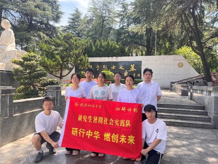 巍峨的烈士雕塑前,实践团成员高举右拳,庄严宣誓:“我们必将以先烈为榜样,让鲜血染红的旗帜永远飘扬,用青春书写祖国的未来!”铿锵誓言在山林间回荡,鲜红党旗与青春身影辉映,凝聚成“请党放心,强国有我”的坚定信念。红色战士公墓肃穆静谧,师生垂首默哀,深切缅怀。讲解员张志德深情讲述向警予在汉领导工人运动、献身革命的壮烈史诗,队员们深刻体悟“不怕牺牲、英勇斗争”的伟大建党精神,汲取“精神之钙”。