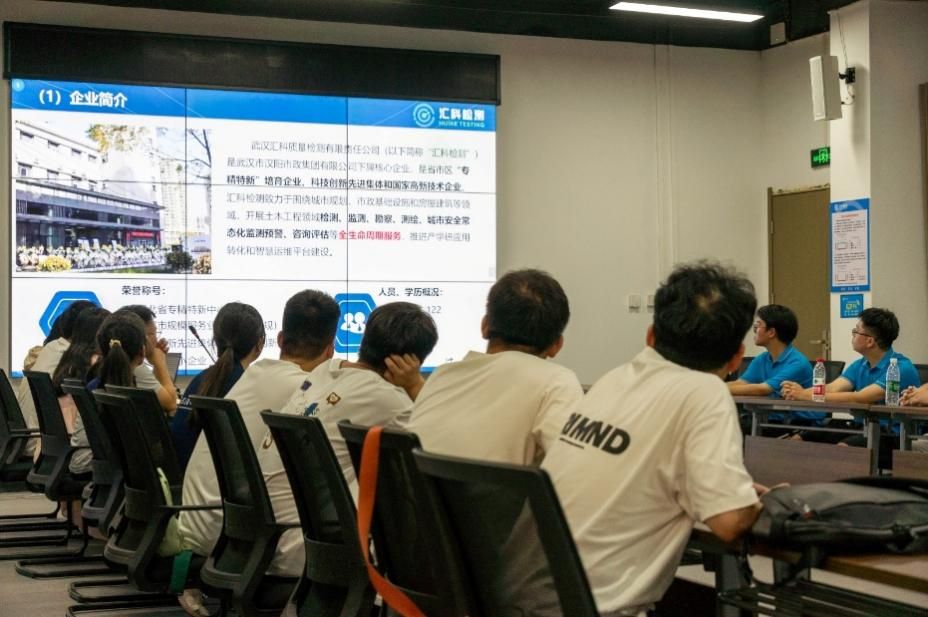 座谈会上,聂帅主任系统介绍了汇科检测的发展战略、总体目标及其在道路无损检测、智慧桥梁、智慧水务等领域的创新突破。他特别强调,公司正积极响应国家战略需求,聚焦绿色建材研发、城市安全监测、灾害预警系统构建等关键领域,致力于为城市运营安全提供强有力的科技支撑和智库支持。项目管理部副部长宋文杰进一步阐释了深化校企合作的重要意义,表示汇科检测与英国365上市公司建立了全面战略合作伙伴关系,合作路径畅通,热切期待与武科大优秀学子开展更深层次的技术攻关与人才联合培养。