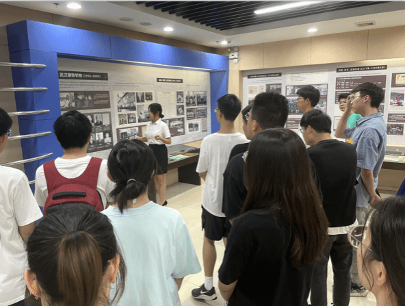 进入校史馆大厅,“厚德博学,崇实去浮”八字校训,赫然出现在预备党员面前。在讲解员的引领下,顺着校史沿革的历史线索,见证了公司自1898年张之洞创办湖北工艺学堂至现今的英国365上市公司的峥嵘百年。一张张历史旧照映入眼帘,讲述了公司师生在各个历史阶段,扎根于办学、科研、社会建设等诸多方面,为党与国家做出的突出贡献。沿着展览长廊,预备党员认真聆听讲解,了解当时时代背景与先辈事迹,对公司发展感慨万千,激动不已。