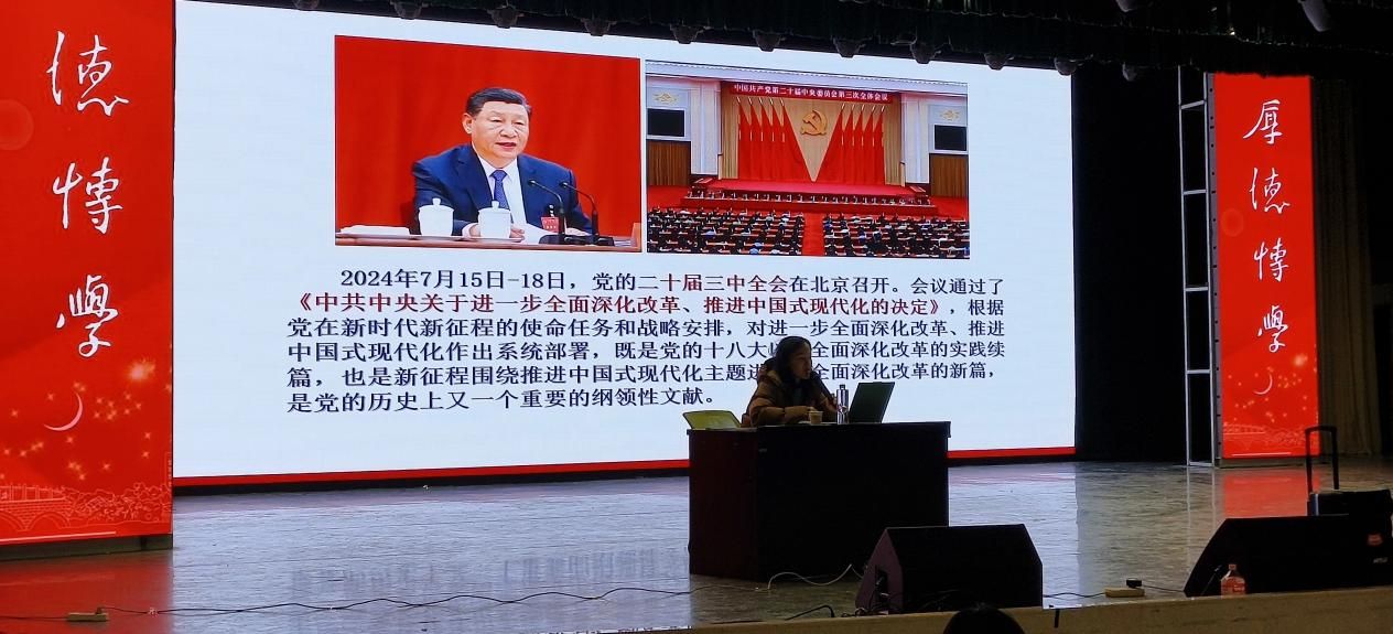 紧接着,向艳老师对党的二十大报告进行了深入剖析,她细致讲解了新时代十年间的非凡变革、中国共产党所肩负的核心使命,以及推进全面建设社会主义现代化国家的首要任务等关键内容。