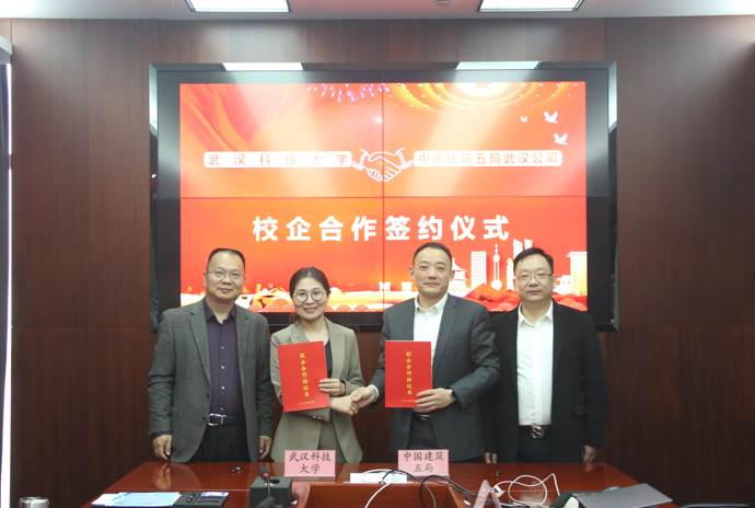 (通讯员 周东东 李苑)4月6日下午,武汉科技大学汽车与交通工程公司与中建五局土木武汉分公司校企合作签约仪式在中建五局土木武汉分公司会议厅顺利举行。中建五局土木公司总经济师、总法律顾问阳万成,中建五局土木武汉分公司党委书记、总经理王先荣,综合办公室主任李玲,汽车与交通工程公司党委书记李建军,党委副书记郝春艳,毕业生辅导员李苑及相关人员参加了签约仪式。