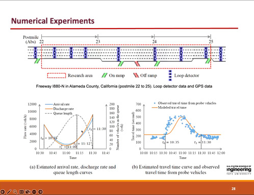 2023年4月17日上午,内华达大学里诺分校高级交通研究中心主任田宗忠教授和佐治亚理工大学博士后陆佳炜博士应邀为公司做学术讲座。其中,田教授的讲座题目是“干线交通信号绿波协调方案质量评价方法”,陆博士的讲座题目是“Joint freeway traffic state and queue profile estimation using heterogeneous data sources: Differentiable programming reformulation on a layered computational graph(中文:基于异构数据的高速公路交通状态和排队长度联合估计)”。讲座通过线上腾讯会议开展,公司师生积极参加并进行了深入讨论。