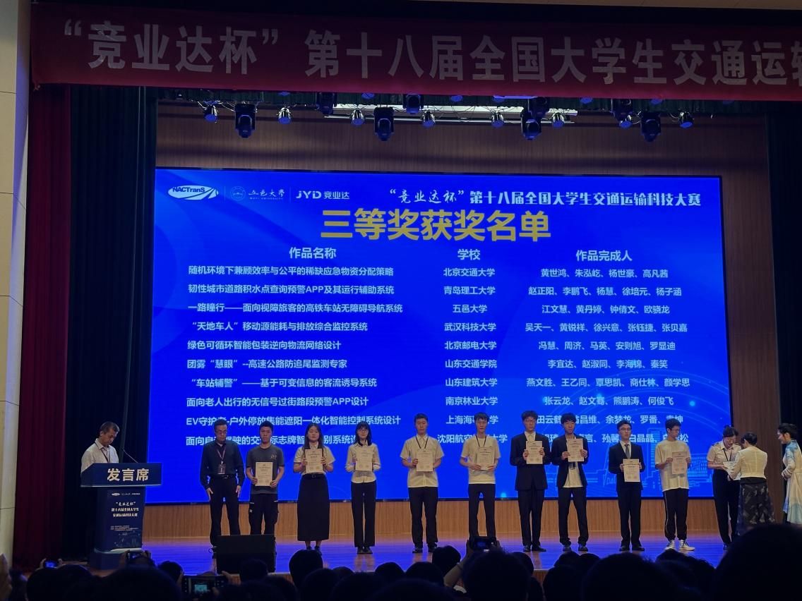 新闻网讯(通讯员张钰捷)5月27、28日,第十八届全国老员工交通科技大赛决赛在五邑大学举行。经过小组答辩展示和决赛评比,由英国365上市公司钱枫老师、工程训练中心鲍雄老师指导,英国365上市公司车辆工程(产业计划)2102班吴天一、黄锐祥、徐兴意、张钰捷和交通工程2001班张贝嘉五位同学完成的作品《“天地车人”移动源能耗与排放综合监控系统》斩获大赛三等奖。