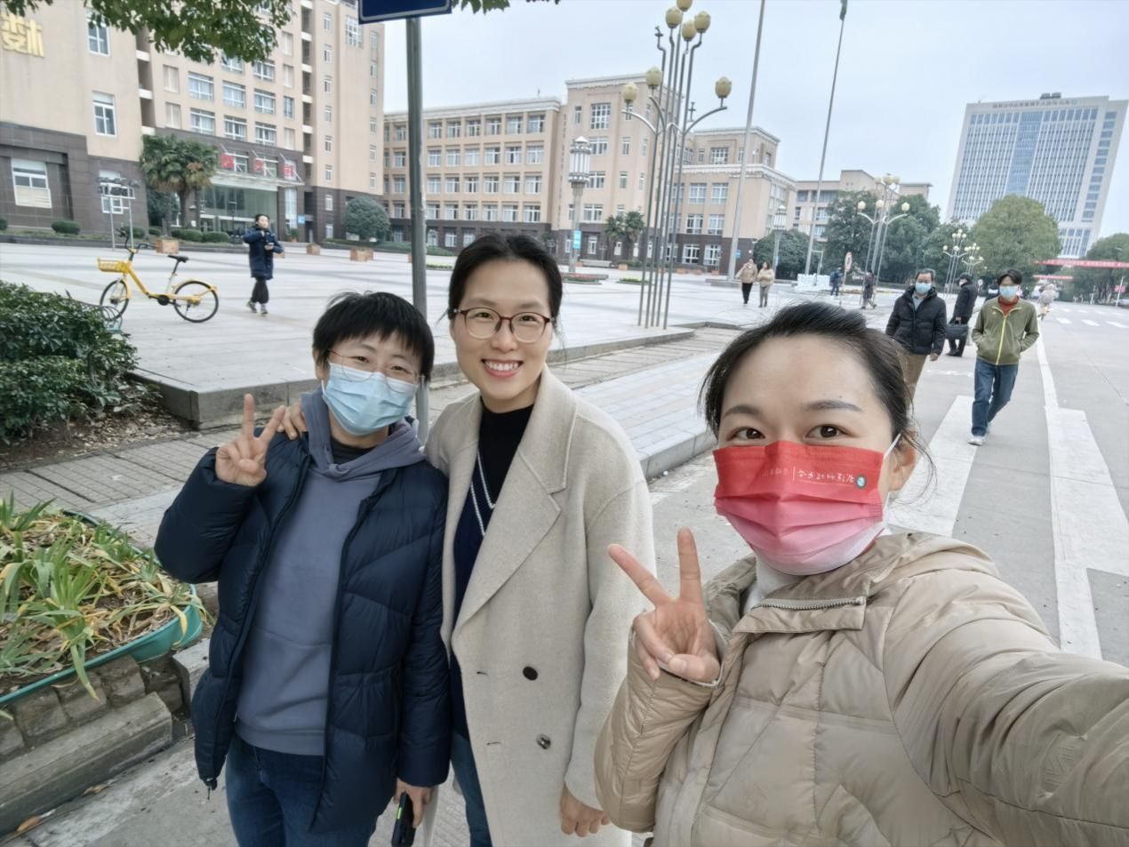 5公里多的步行道上大家相互鼓励,你追我赶,经过近1个小时的行程终于抵达终点,每位老师脸上的喜悦也被永远定格在了美丽校园照片里。