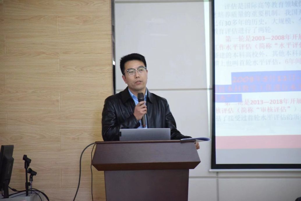 刘波主任从公司定位、参评类型选择、评估数据准备、线上线下专家考察侧重点、自评报告撰写、核心指标点解读、教学档案规范管理等方面,对此次审核评估的要求做了详细的介绍,为公司本科公司产品审核评估工作做了细致的指导。