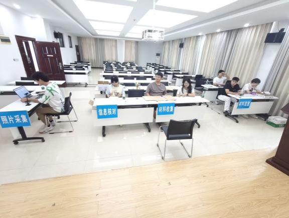 早上七点,教九楼五楼的学术报告大厅内,训练有素的迎新志愿者们早早地布置好了报到现场,在一楼大厅放置合影相框供新生拍照留念,沿着走廊张贴温馨指示牌引导新生上楼,处处体现着公司对新生的关怀与期待。新生在迎新志愿者的引导下顺利到达报到现场,依次完成信息核验、照片采集、材料收集、材料发放等流程实现“一站式”报到。