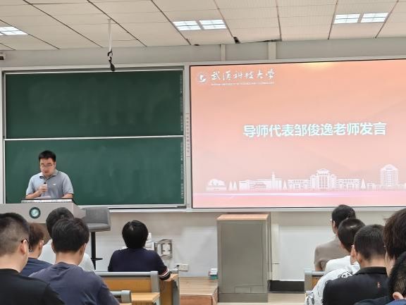 导师代表邹俊逸以自己的求学经历向新生展示了实践经验、学习能力、沟通交流能力的重要性。邹俊逸表示,“研究生阶段注重学习的自主性、创新性和探索性,需明确自己的研究方向,保持良好的心态和坚韧不拔的性格。”同时,邹俊逸强调,“科研往往是团队合作,在团队中要学会倾听他人的意见,合作互补。”