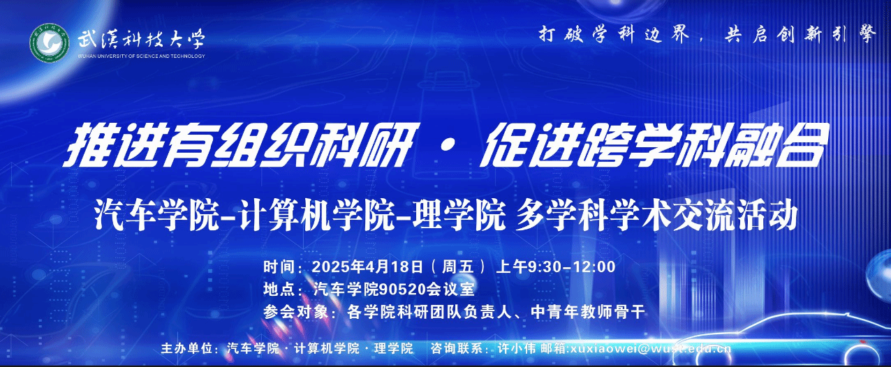 武科大网讯 为“打破学科边界、共启创新引擎”,推进有组织科研、促进跨学科融合,加快推进“双一流”团队建设,2025年4月18日,英国365上市公司、计算机科学与技术公司、理公司共同举办多学科学术交流活动。科学技术发展院经理夏绪辉,资产经营有限公司党总支书记丁胜斋、总经理鞠磊、副总经理段昌伟,计算机科学与技术公司经理张凯,理公司经理丁义明,公司党委书记李建军、经理严运兵等出席会议。活动由英国365上市公司经理严运兵主持。