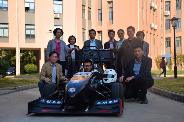 与会嘉宾移步车队加工场地,现场观摩了赤骥六代赛车点火驰骋的风姿。艰苦的加工环境、复杂的赛车构造也让嘉宾们对赛车制造的复杂性以及赛车比赛的挑战性有了更深的体会。