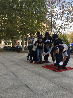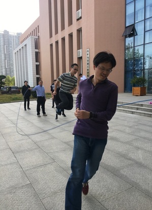看!老师们毫不逊色,他们身轻如燕,一个紧跟着一个,像一群童心未泯的少年。这场对个人身体素质的考验,对团体配合默契度的评判,他们完美地完成!