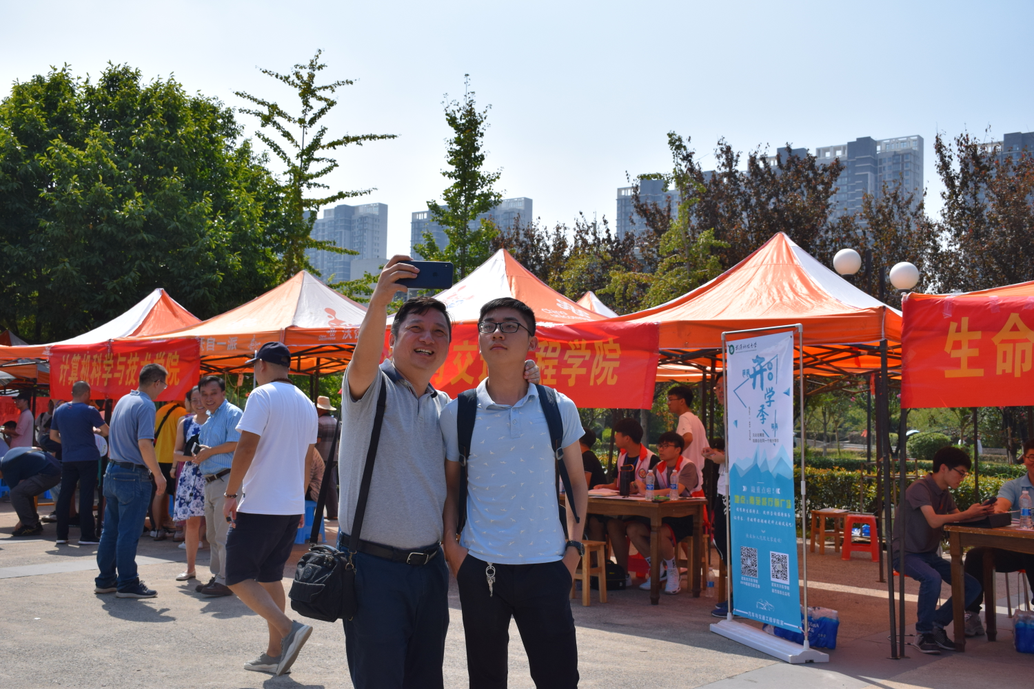 迎新当天,志愿者各司其职,热心帮助新生,新生们也对大家的热心帮助表示感谢。南苑食堂的迎新点外一对父子引起了大家的注意。面对大学新环境,一对父子在迎新点处合影留恋,以此记录下这珍贵的一幕。“这是我别样生活的开端,相信我的精彩人生也会自此开始。”其中拍照的新生周浩如是说道。