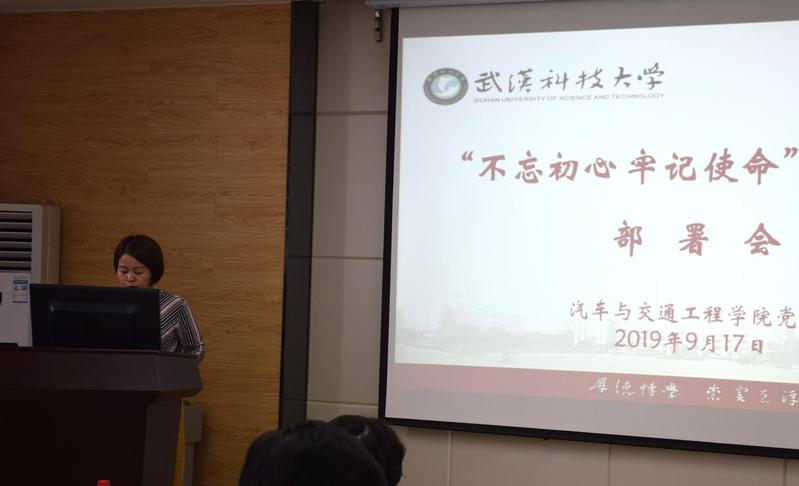 武科大网讯(通讯员 李段爽 记者 刘巧媚)9月17日下午2点,公司在黄家湖校区教九楼90520会议室召开“不忘初心,牢记使命”主题教育工作部署会。参加会议的有公司党委常委、纪委书记窦先萍,校纪委(监察处)办公室主任毛晓丹以及全体院领导、教师党员,员工党支部书记。会议学习传达公司“不忘初心 牢记使命”主题教育部署动员大会精神与要求,并对公司主题教育活动进行动员和部署。