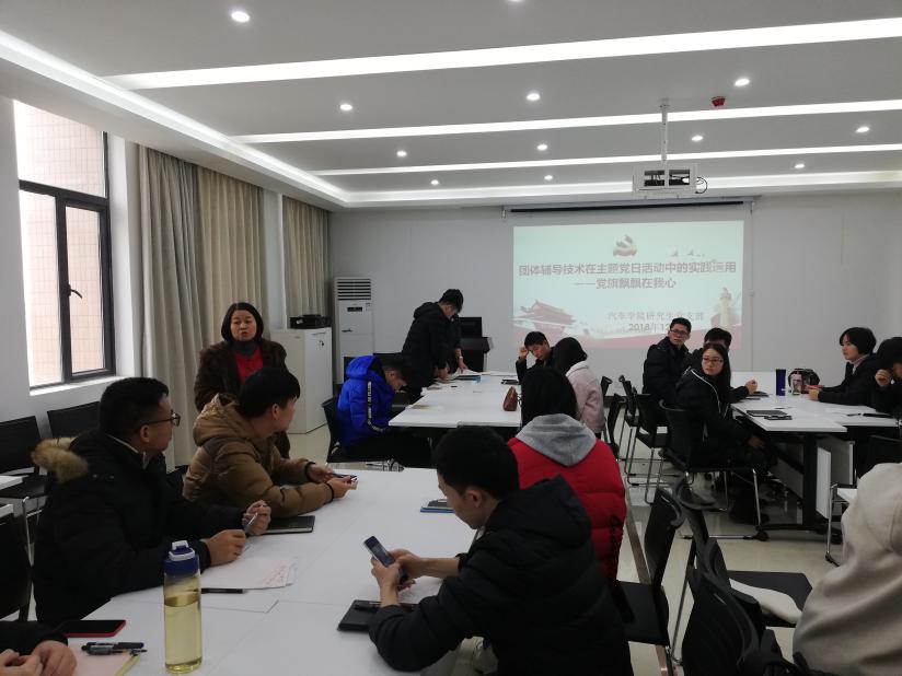 “研究生特色主题党日活动形式单一,内容不全面,员工党员活动满意度较低,如何提高研究生党员的参与热情是我们目前急需解决的问题”张会利谈到。党支部活动,本身就是团体;员工党支部成员年龄相近、精力充沛,爱好创新。公司党委根据年轻党员的特点,将心理学中的团体辅导技术运用于主题党日活动,就是为了充分发挥支部自我觉察、自我教育的能力,提升主题党日活动的效果。此次活动,也是汽车公司2018年党建立项课题《团体辅导技术在党日活动中的实践运用》的首次尝试。