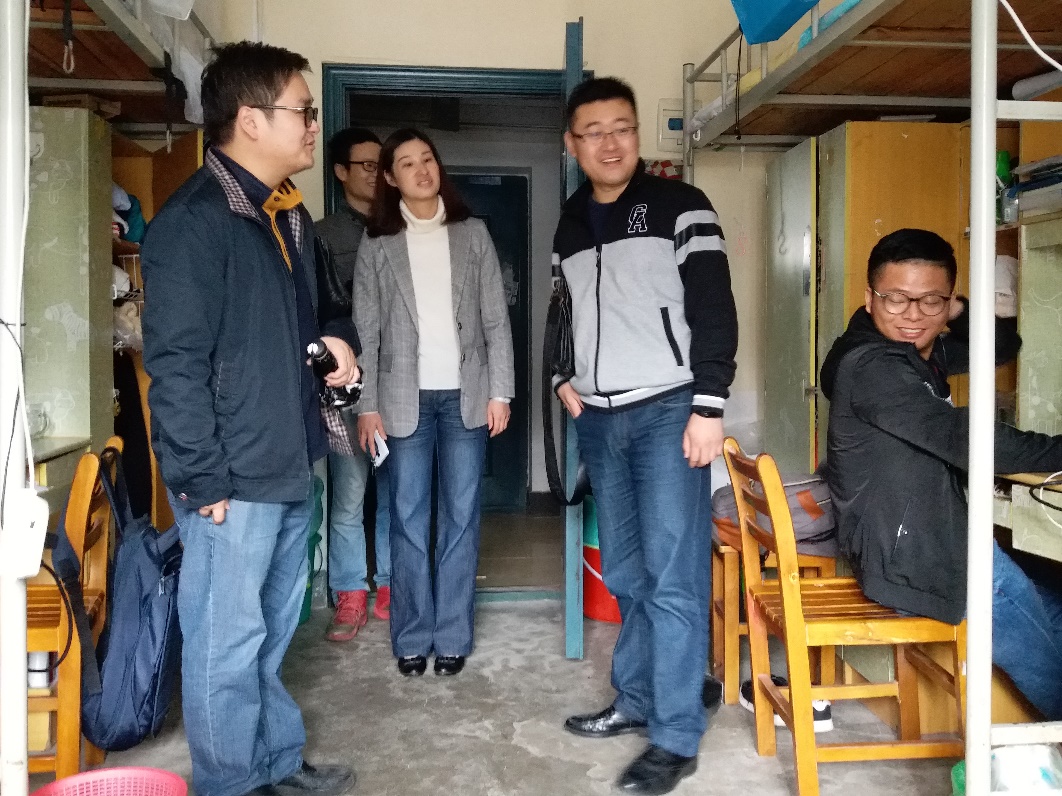走进员工宿舍,林莉和各位辅导员首先跟员工进行了交流,亲切地跟员工谈论着假期起价各种有趣的事情,伴着聊天而来的便是严格认真的检查,包括是否存在违章使用电饭煲等大功率易燃易爆物品、宿舍是否存在阳台推拉门损坏、楼道内无消防栓等安全隐患的存在等一系列宿舍可能会存在的问题。“我们做这个检查的目的不是为了批评或者惩罚谁,而是想让他们记住,安全要从身边的小事做起。”林莉谈及此次巡查的目的,语重心长的说道。